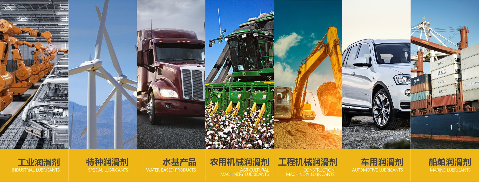 車用油系列 工業油系列 工程機械用油 高端農機用油 船舶用油系列 潤滑脂系列 養護品系列 特種潤滑劑 OEM 明星產品